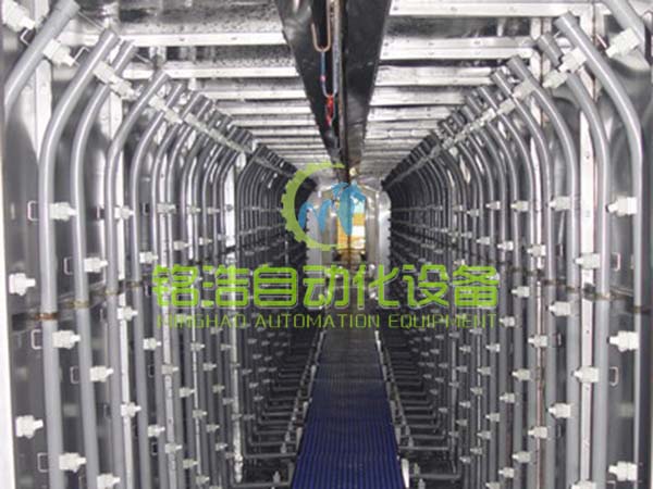 B、潜泳式:潜泳式处理方法通过吊空链传送,让工件浸入泳池,在药液池中进行处理。适合各种复杂形状的物件处理,效果好且节省药水用量。